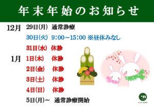 年末年始のお知らせ